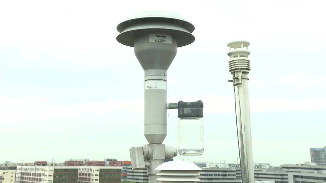 7月11日,记者来到松江区环境监测站的一处楼顶天台,看到PM2.5检测仪器的采样部分正在运转,空气从顶部进入,再通过切割头、通道进入房间内的检测仪器,通过计算可实时得出空气中PM2.5的浓度值。记者通过手机软件看到,当时PM2.5浓度为12微克每立方米,空气质量显示“良好”。