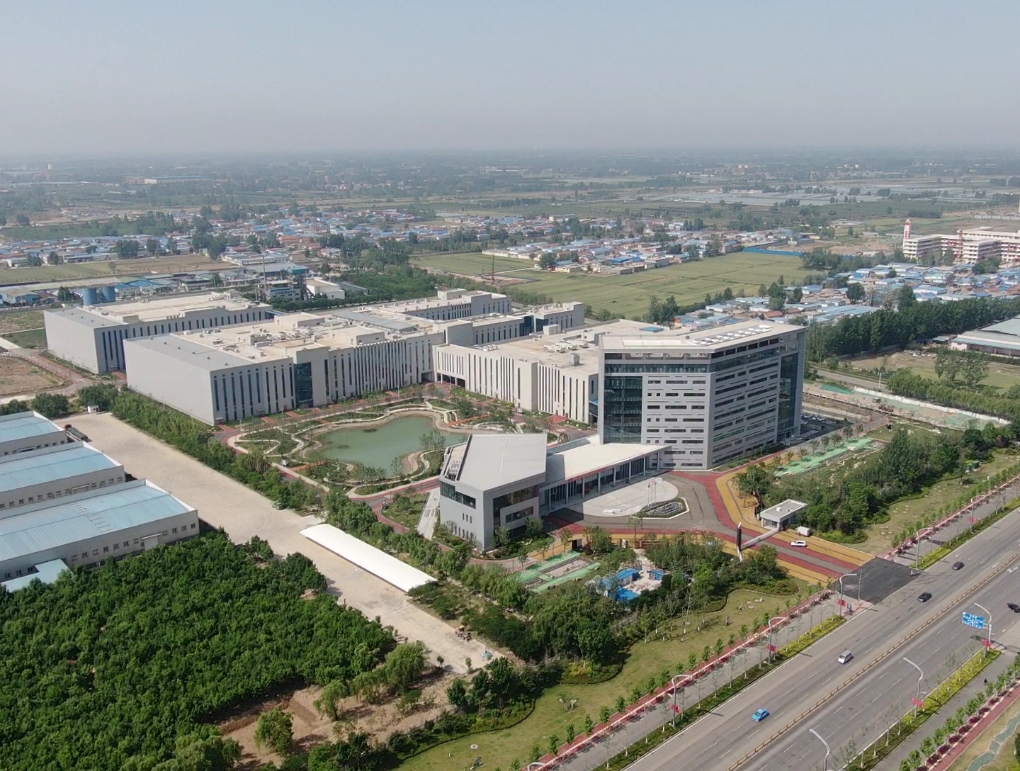 走进步长中药现代化集成项目园区,一排排标准化装配生产厂房映入眼帘,白墙黛瓦、连廊花窗,树木葱茏、地面洁净,林立的高楼间镶嵌着一弯湖水,水边各色花草在阳光下竞相开放,很难想象这是一处医药项目,踏入这“美丽厂区”仿佛置身“生态花园”。
