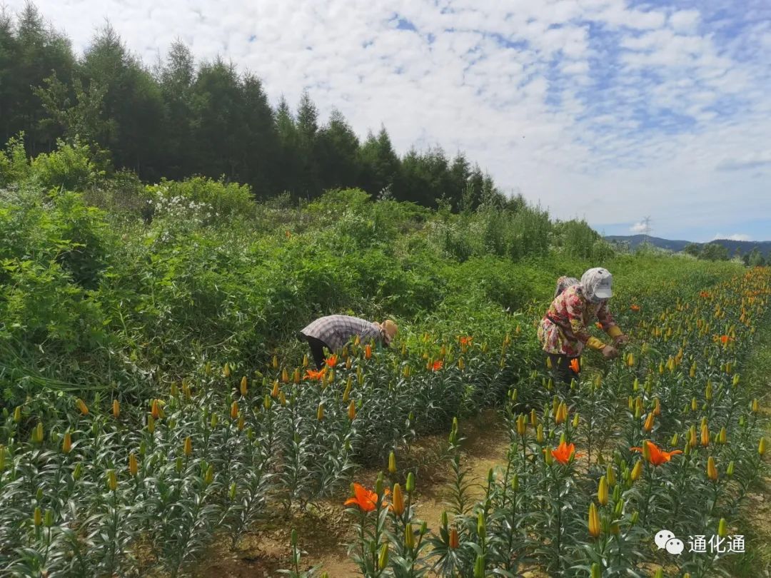 “今年3月,项目落户环通乡,在选择种植品种时我们进行了充分调研,赤芍、百合等品种观赏性更高,目前花卉长势特别好,第一年在这试种很成功。”项目负责人、吉林绿波海通中药科技有限公司总经理徐远坤告诉记者,这些百合花可做花茶,可供观赏,根部可加工成食品级药食同源的产品,下一步公司将整合附近中药材种植基地建立加工厂,实现种植、加工、销售、旅游观光全链条发展。