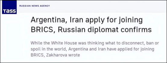 6月27日,阿根廷和伊朗分别宣布希望加入金砖国家,伊朗总统莱希在当月的金砖国家工商论坛上发言时曾称,伊朗愿意分享其巨大的能力和潜力,以此帮助金砖国家实现目标。以视频方式参会的阿根廷总统阿尔贝托·费尔南德斯表示,阿根廷希望成为金砖国家的正式成员。