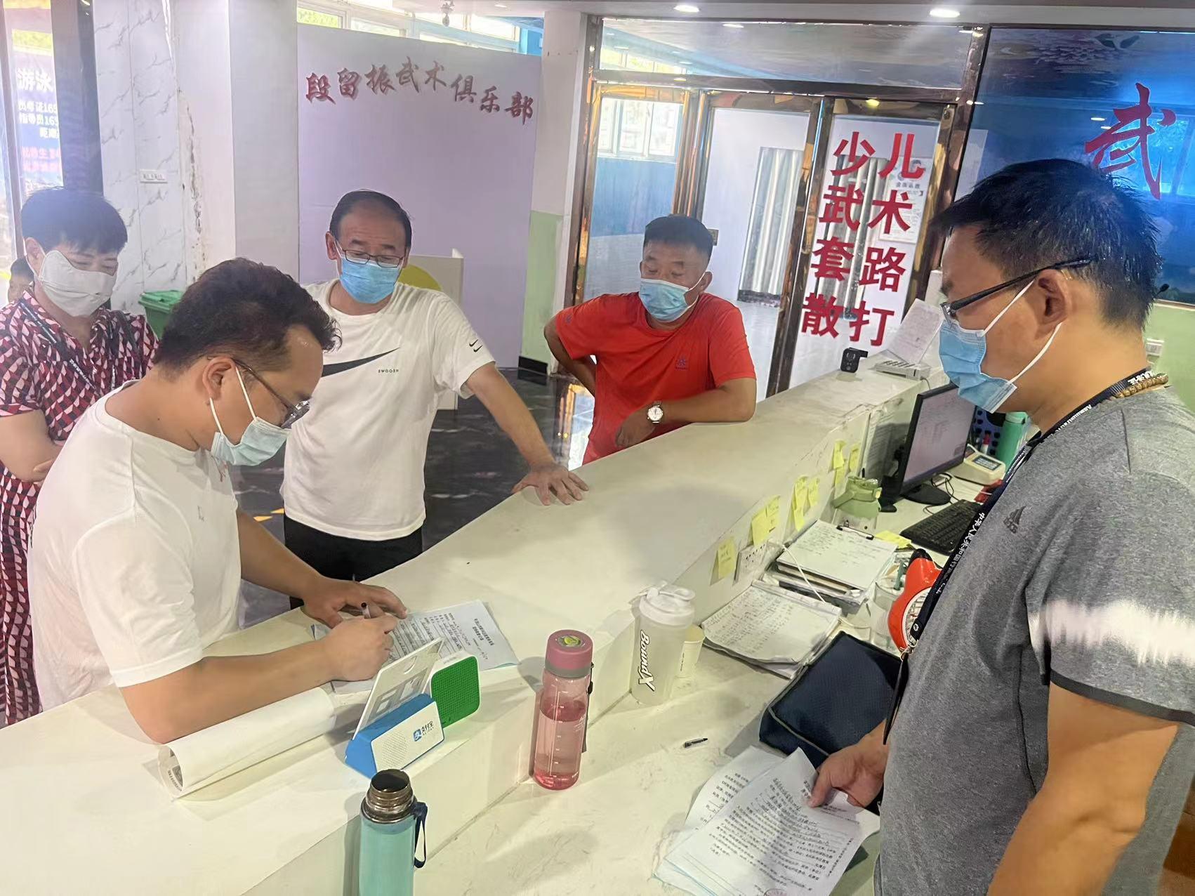 7月15日上午,新华区教体局校外培训监管股、体卫艺办公室、疫情防控教体系统专班、幼教股、基建股等股室负责人组成联合检查组,对依托市教体局批准的俱乐部、协会和市场监督管理局颁发的俱乐部营业执照等名义,违反新华区疫情防控政策暑假期间违规开课、违规开展体育类培训的西体育场内山顶体育运动馆、五环游泳馆、体校游泳馆、启蒙路与光明路交叉口向西80米路南厂房内的山顶篮球运动馆进行查处。