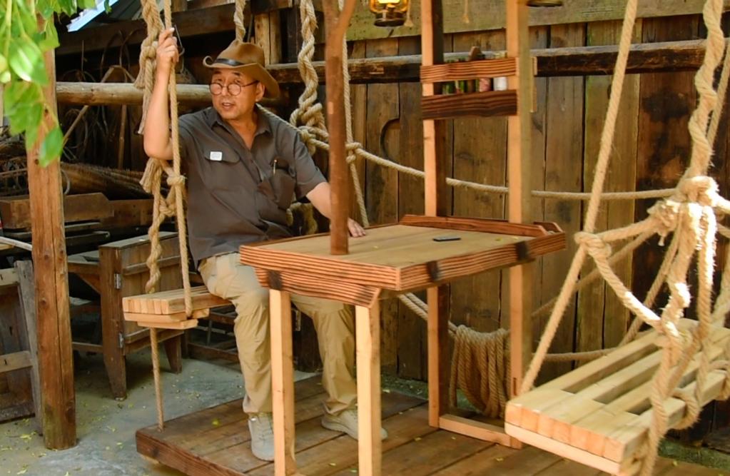坐立秋千、现代吧台、手拉升降送餐柜……由守义还按照现代城里人的生活和娱乐习惯,完善老屋内外设施和功能布局。