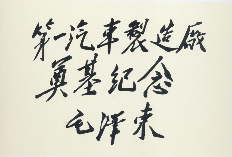 1953年6月,毛泽东同志为一汽奠基题词“第一汽车制造厂奠基纪念”