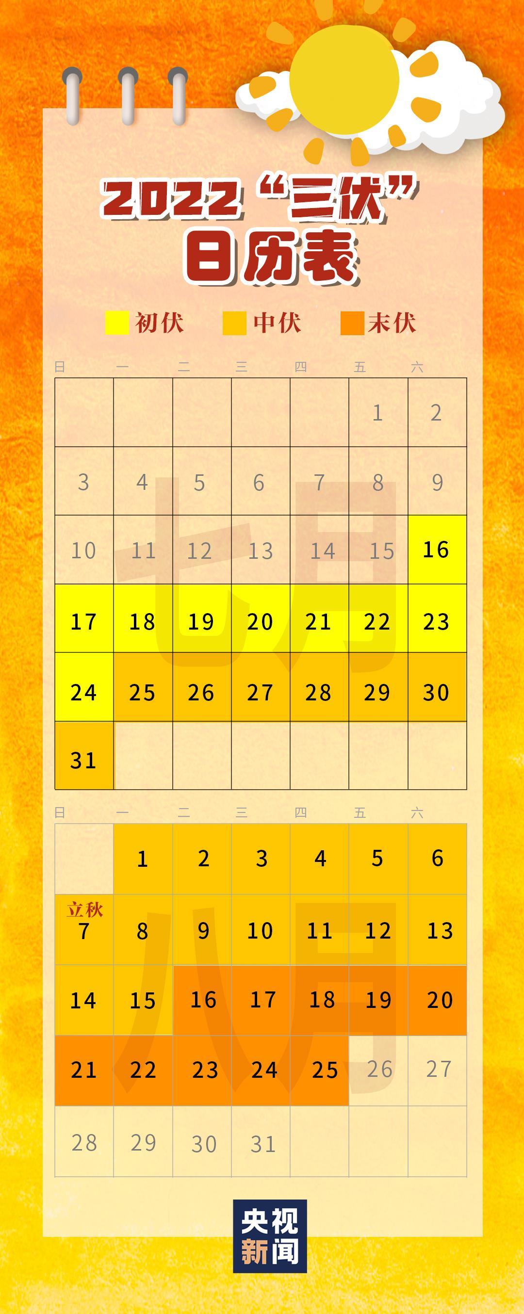 收藏!2022“三伏”日历来了