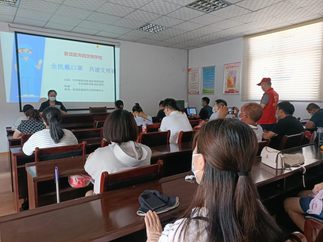 为营造辖区浓厚的防疫宣传氛围,提高群众自身防疫意识,养成科学佩戴口罩的良好习惯。7月15日卧龙区梅溪街道梅溪社区新时代文明实践站积极响应上级“全民戴口罩共建文明城”文明行动号召,结合社区实际组织辖区党员群众开展“全民戴口罩共建文明城”知识讲座。