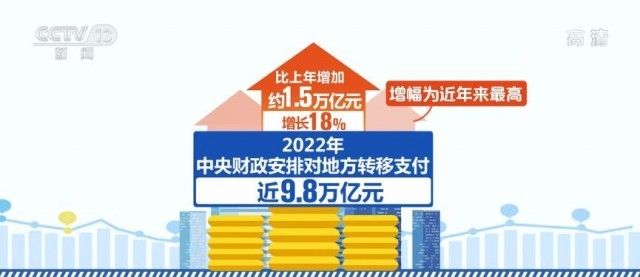 具体来看,2022年中央财政安排对地方转移支付近9.8万亿元,比上年增加约1.5万亿元,增长18%,增幅为近年来最高。这其中,安排困难群众救助补助资金1546.8亿元,比上年增加70.6亿元;一次性安排支持基层落实减税降费和重点民生转移支付1.2万亿元。