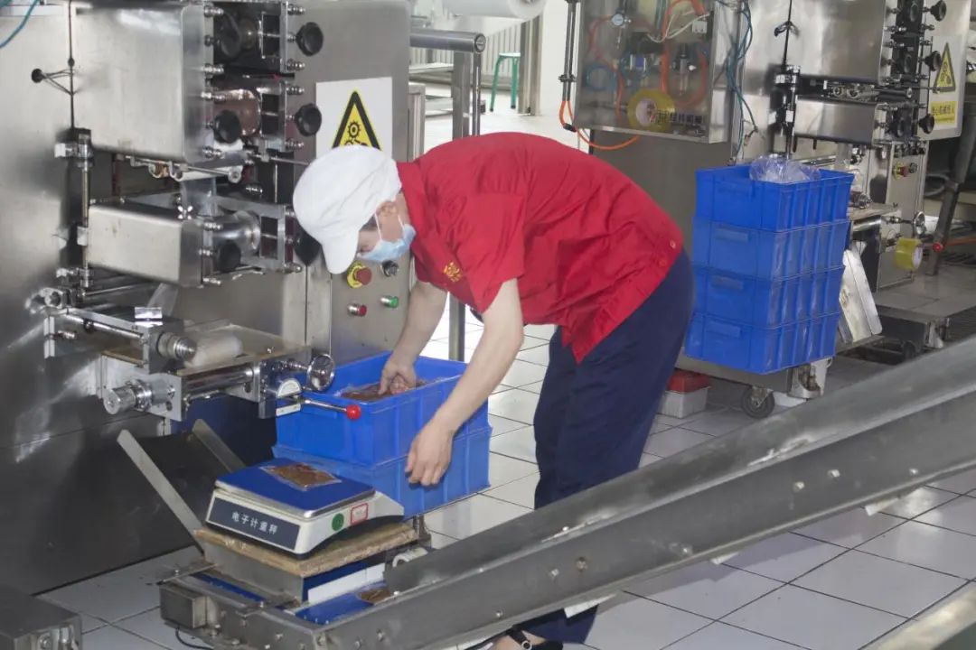 盛夏七月,走进宁夏红山河食品股份有限公司内包装车间,杨春霞正在进行蘸料内包装工作,打包、称重、传送,一气呵成。