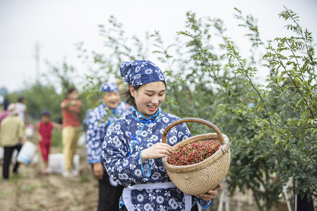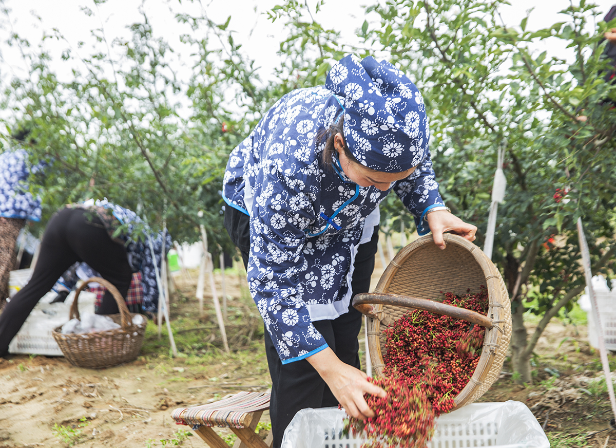 “凤椒”椒色鲜红、颗粒硕大、肉厚、形具“双耳”,油脂发达,麻味纯正,清香浓郁,色泽鲜艳,素有香飘十里之美誉,被誉为“花椒之王”;“六月红”丰产性好,品质优,田间调查抗病性强,较耐寒。三至六年树龄平均亩产400—600公斤,六年以上树龄平均亩产800—1000斤。目前市场价格“凤椒”每斤60元、“六月红”每斤42元。初果期亩均产值4.5万元、盛果期达9万元以上。(摄影:薛生海)