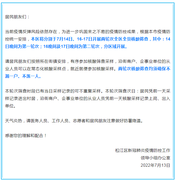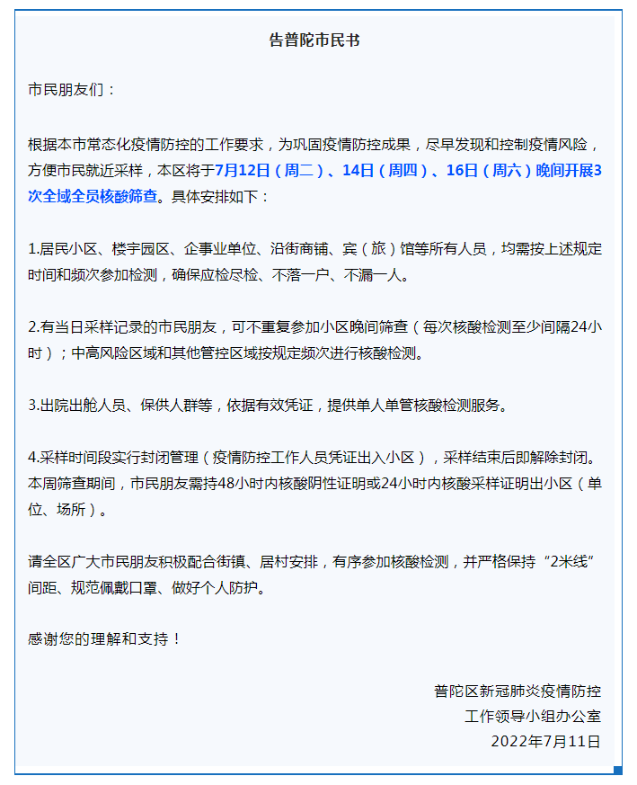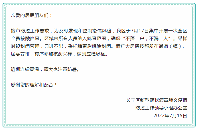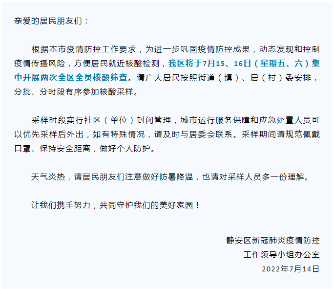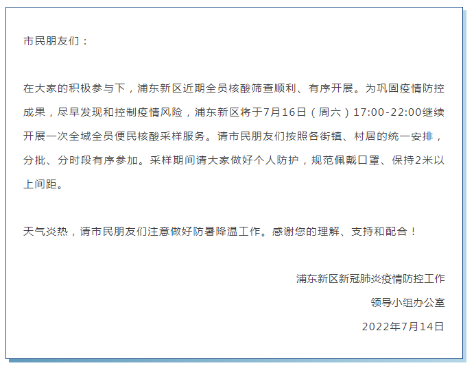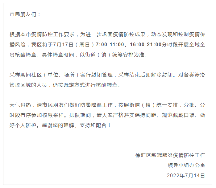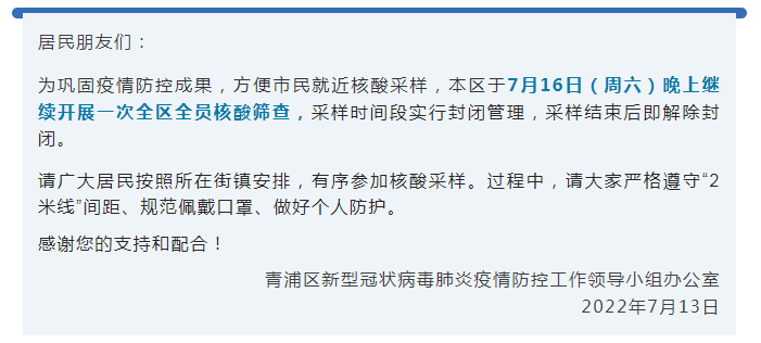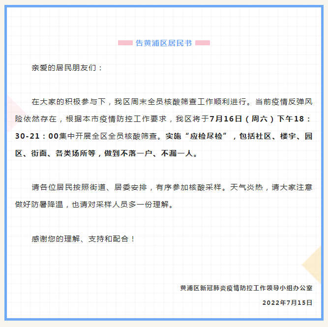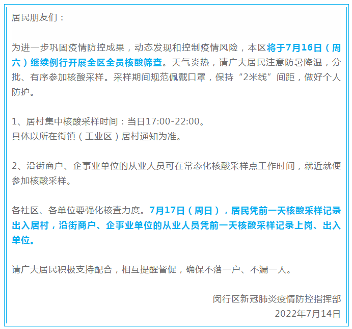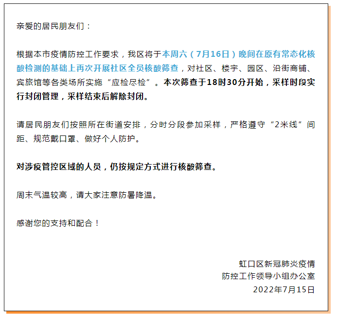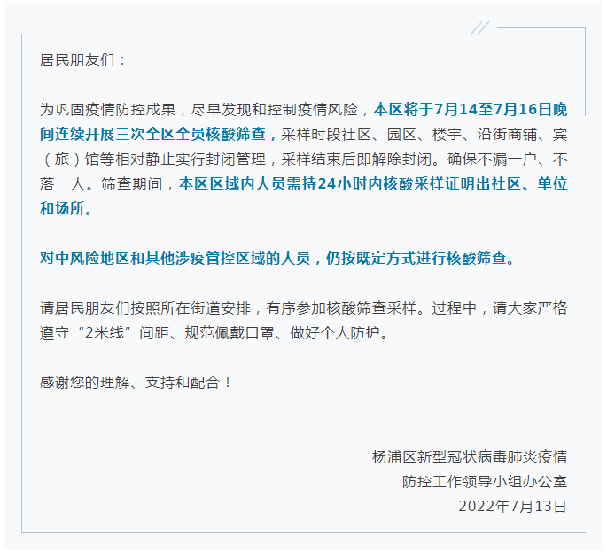 最新汇总!本周末上海多区核酸筛查安排截至7月15日