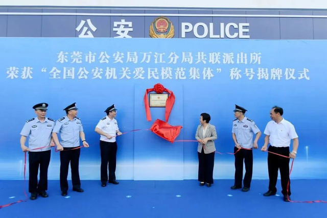 7月14日上午,东莞市公安局万江分局在共联派出所举行“全国公安机关爱民模范集体”揭牌仪式。