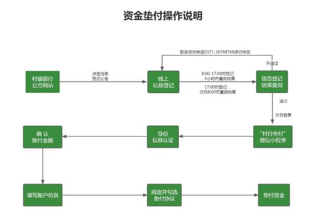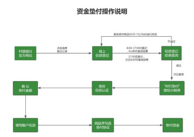 【大河财立方消息】7月15日,禹州新民生村镇银行、上蔡惠民村镇银行、柘城黄淮村镇银行、开封新东方村镇银行发布资金垫付操作流程。根据操作流程,用户完成信息登记,进行身份信息认证、确认垫付金额后,即可填写账户信息,收到垫付资金。
