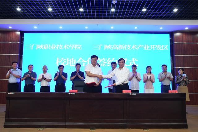 会上,三门峡职业技术学院学院党委书记杨彤,三门峡高新技术产业开发区党工委书记胡志权分别在签约仪式上致辞,三门峡职业技术学院党委副书记、院长颉潭成与三门峡高新技术产业开发区党工委副书记、管委会主任吴刚签订了合作框架协议。
