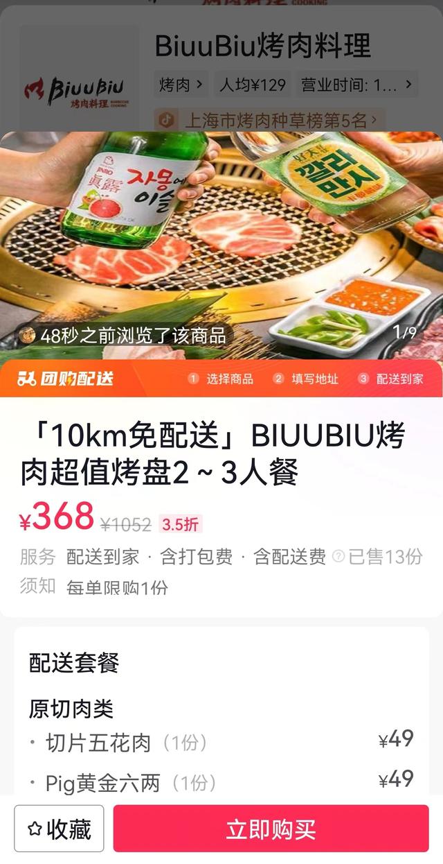 据媒体报道,抖音已经开始尝试推出餐饮的即时配送服务,目前这一功能叫做“团购配送”。