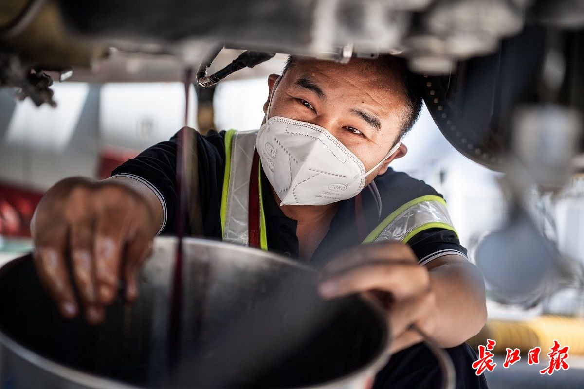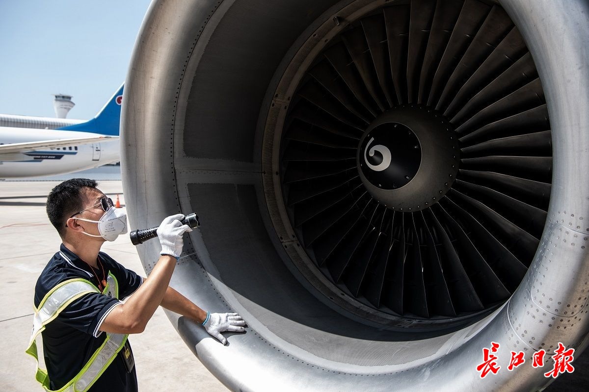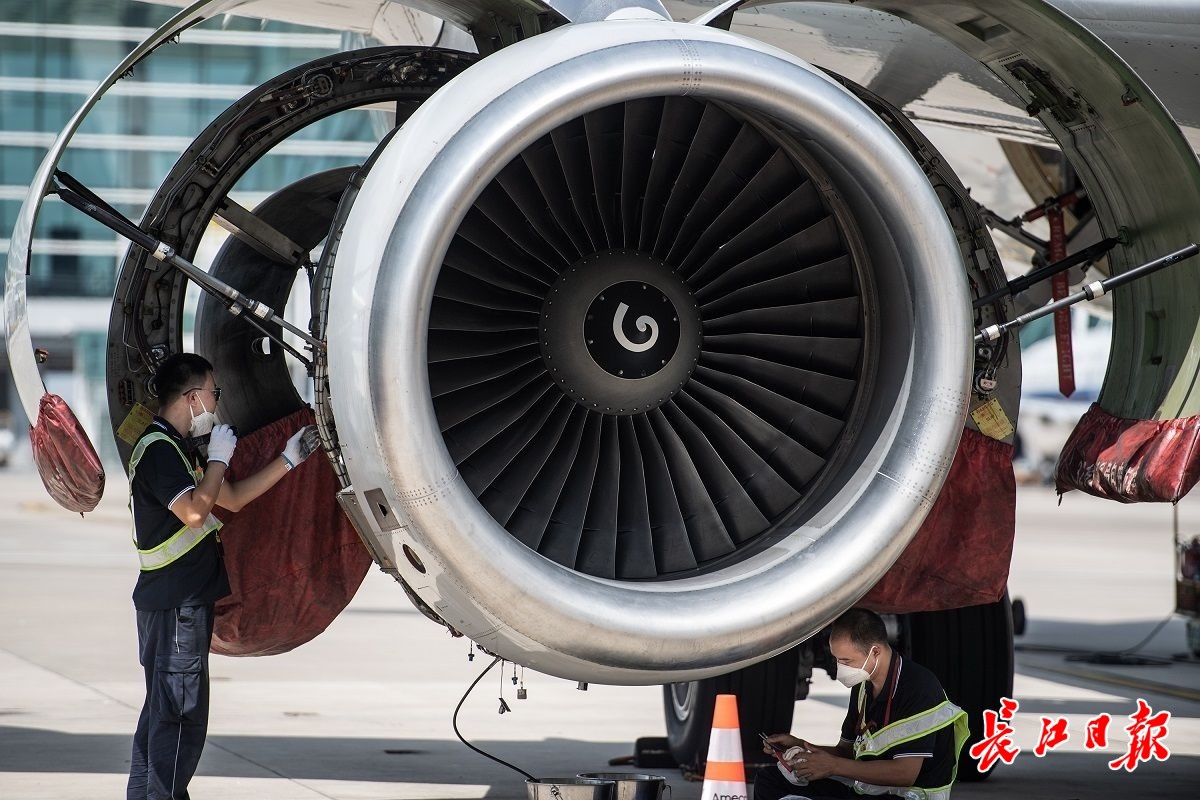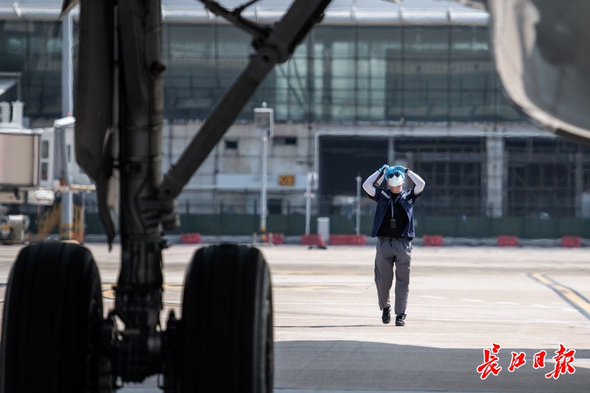 长江日报大武汉客户端7月16日讯 进入7月,民航运输步入暑运,旅客出行人数增多、航班保障量增加。7月16日,在烈日的烘烤下,武汉天河机场停机坪地表温度已近60℃,整个停机坪没有任何遮挡,再加上停机坪上的水泥地吸热,个人体感更加闷热。武汉天河机场地勤、机务人员顶着烈日,在热浪中保障每一班飞机的安全起飞。(长江日报记者任勇 徐丹 通讯员杨永勇 摄影报道)
