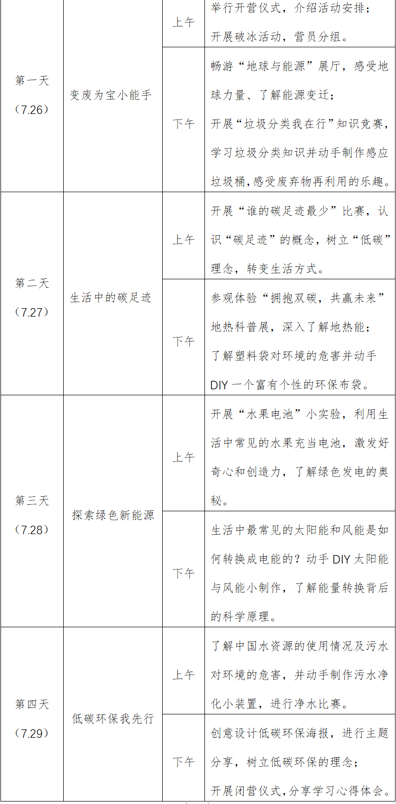 3.夏令营期间,专职老师全程参与,所有活动需由教师引导完成,禁止学生危险操作。