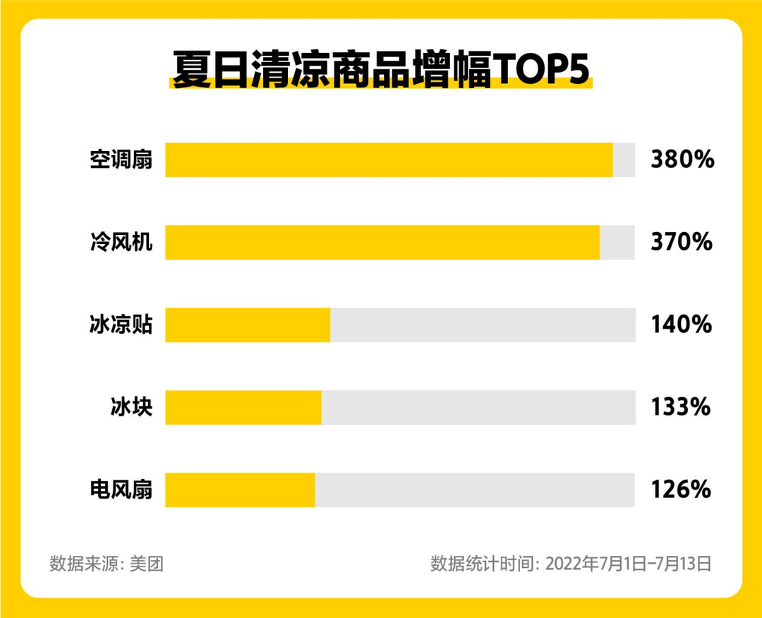 此外,平台的冰贴、冰块等清凉快消商品,同比增长也分别达140%、133%。成都的高温消费尤为突出,平台数据显示,成都用户7月以来下单的“食用冰块”同比增长277%,增速居全国第一。