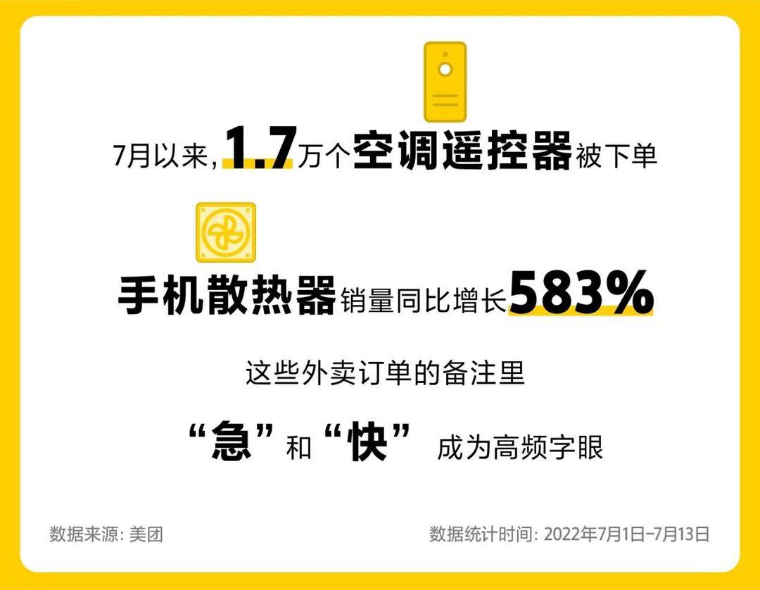 7月以来,为应对找不到空调遥控器的紧急局面,有超过1.7万名消费者通过外卖平台下单万能空调遥控器,其中成都消费者下单近1500个。在这些外卖订单备注中,“急”和“快”成为了最高频词汇。