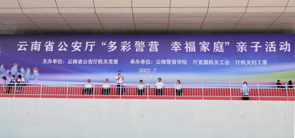 7月16日,由云南省公安厅机关党委主办,云南警官学院承办的省公安厅机关“多彩警营、幸福家庭”亲子活动在云南公安民警综合训练基地拉开帷幕,来自厅机关500个警察家庭、1215名民警职工辅警及家属、子女参加活动。受副省长、省公安厅党委书记、厅长任军号委托,厅党委委员、政治部主任肖峰出席活动,代表厅党委向参加活动的民警家庭表示热烈欢迎并致以诚挚慰问。