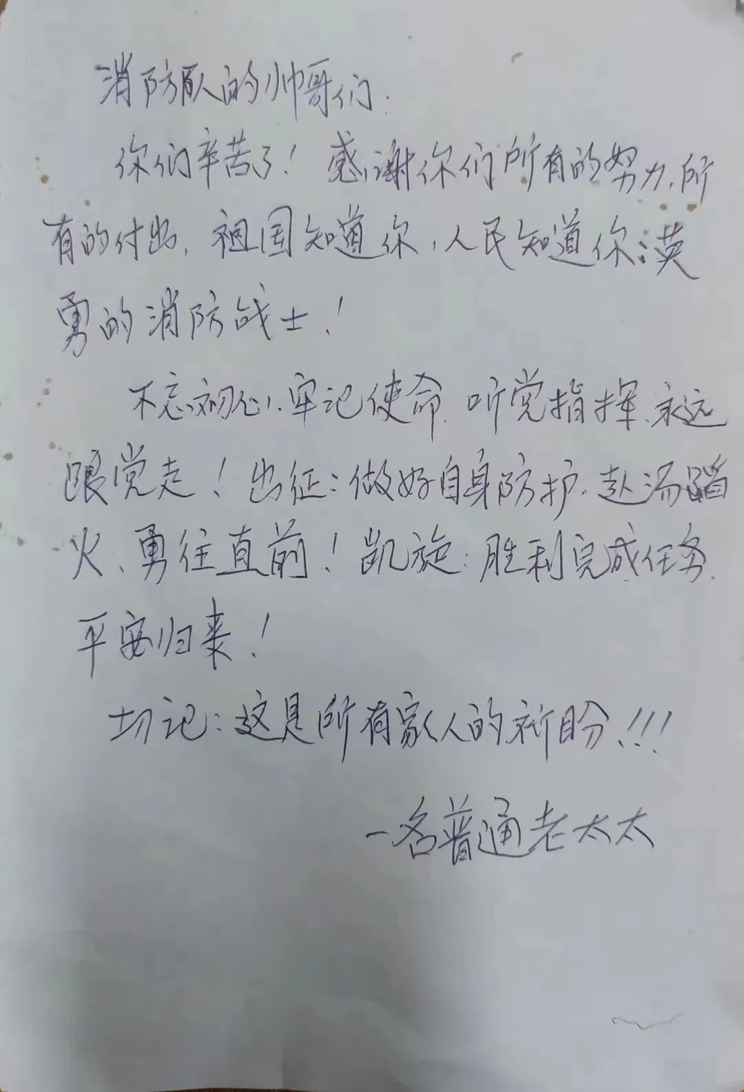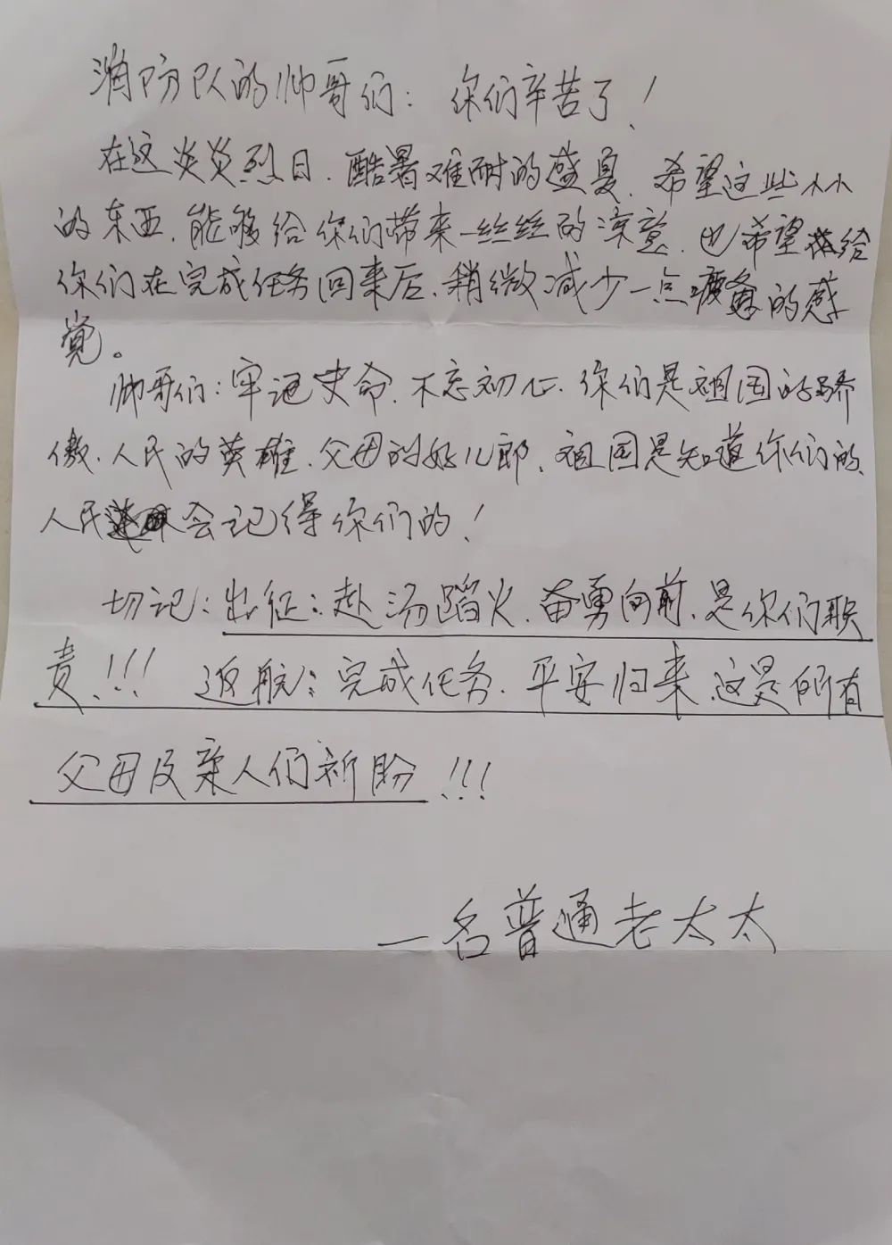 消防员看到袋子里熟悉的字条署名