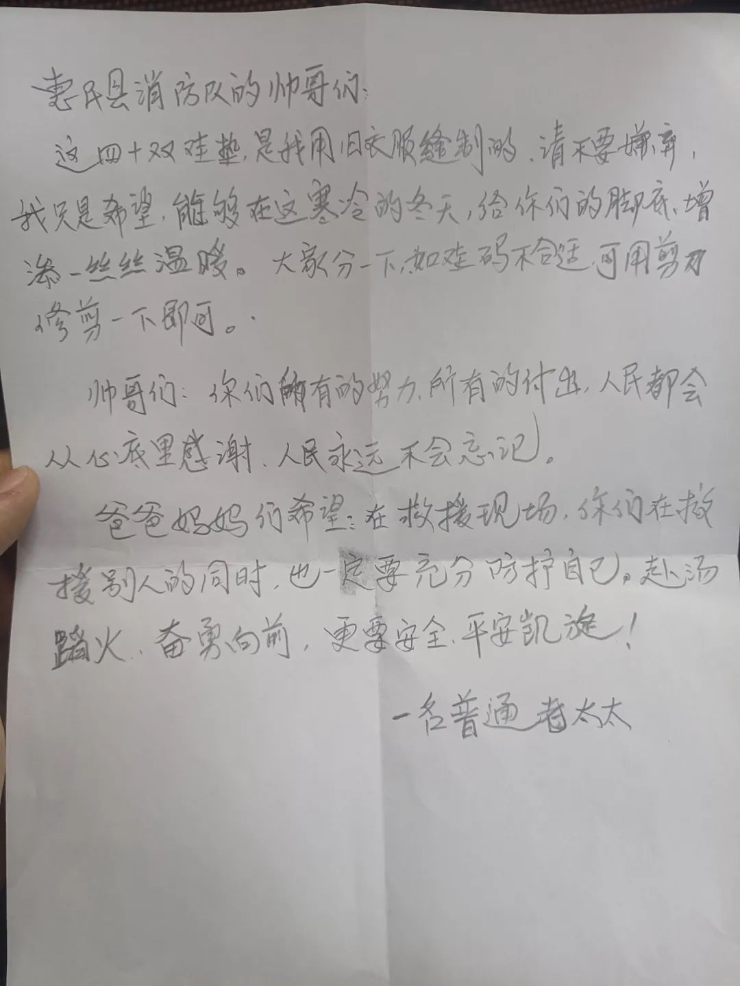收到了40双手工缝制鞋垫和一封信