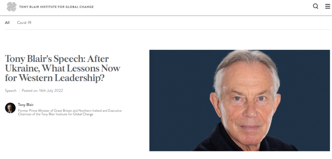根据托尼·布莱尔全球变化研究所网站发布题为“乌克兰之后,西方领导层现在得到什么教训?”的演讲实录,布莱尔一开始表示,与1945年或1980年相似的是,“西方正处于一个(新的)转折点”。他说,西方政治如今一片混乱,更加丑陋、低效,党派之争更加激烈,并受社交媒体的影响。