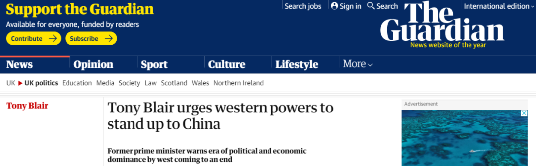布莱尔最新表态:西方已处于新转折点,须应对中国崛起,但不能脱钩。