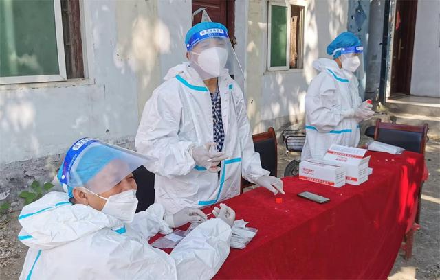 法院派驻东官庄镇夏庄村第一书记姚刚在7月14日上午的全员核酸采样中,同样也身穿厚厚的防护服,为每位村民登记采集信息,组织村民按照疫情防控规定有序排队采集,用自己的行动提前完成了全村群众核酸采样工作。