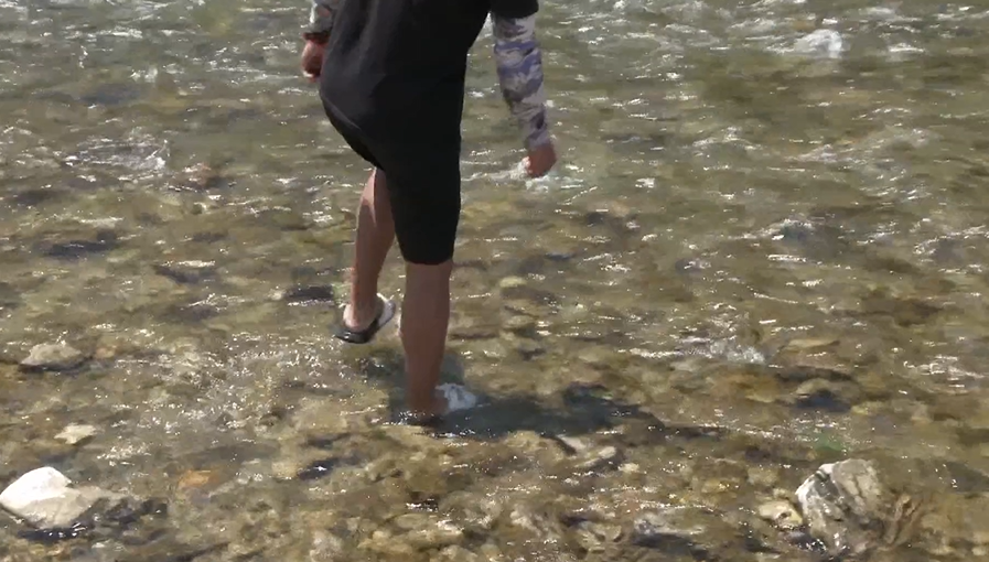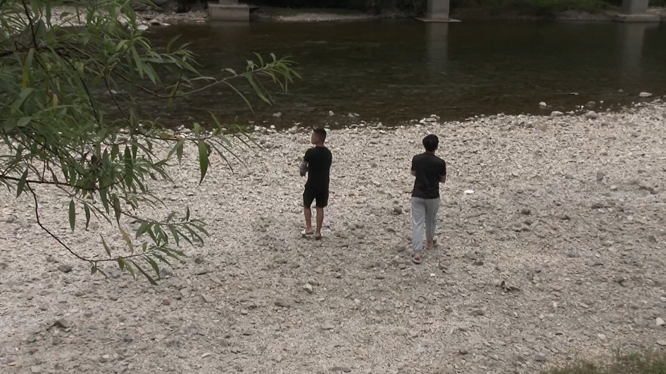 小龙:下来的时候我们当时就看到有人从这里穿河去对面钓鱼,我们觉得我们也可以穿过河去那里钓鱼,那天太阳有点大,我们觉得有点晒,所以我们就去对面那里凉快点。