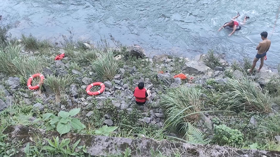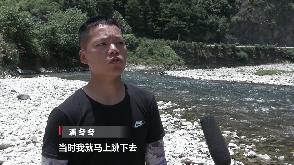 潘冬冬:我马上从上游潜水往下找,然后最终在深潭里面把他找到了,当时第一时间就是把他拖出来岸边,并且给他做了心肺复苏,然后加上人工呼吸。