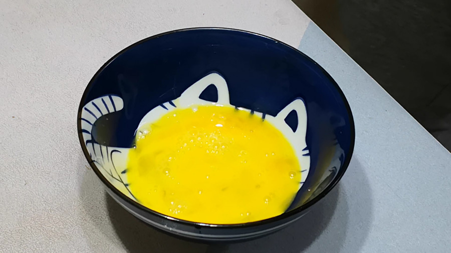 2.取两个鸡蛋磕入碗中,充分打散后备用;取一勺淀粉放入碗中,加入适量的清水调成水淀粉备用。