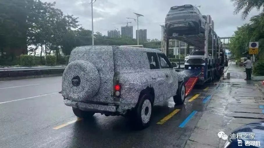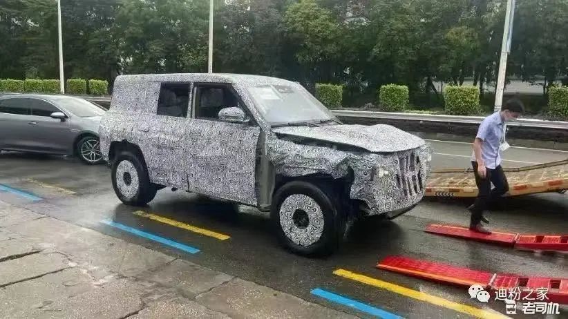 这个方盒子神似路虎卫士的家伙便是比亚迪的高端品牌硬派越野车,此前它一直是骡车状态,套壳唐进行测试,如今我们第一次见到它的大致模样。车辆尺寸不小,根据图片中成年男子和后方车辆的比例推断,车身高度至少超过1.8米,按照一般硬派越野车来判断,它的实际高度大概在1.9米左右,车辆使用四轮四角的布局,轴距够长,前后车门尺寸不小,预计实车定位中大型SUV。