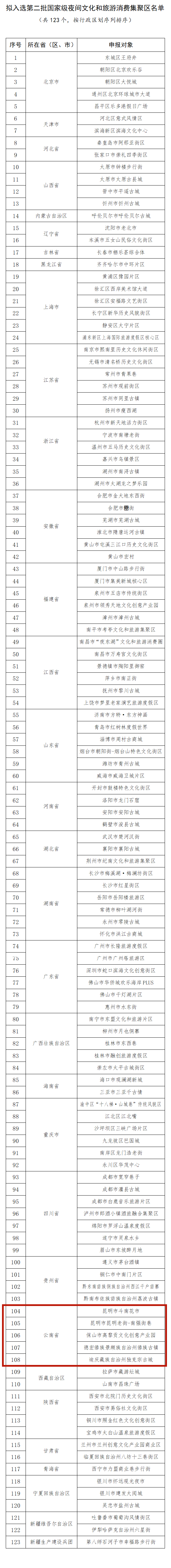 根据《文化和旅游部办公厅关于开展第二批国家级夜间文化和旅游消费集聚区申报工作的通知》(办产业发〔2022〕27号),经地方申报、省厅推荐、合规性审查、专家评审、舆情风控、实地考察等程序,拟确定北京市东城区王府井等123个项目为第二批国家级夜间文化和旅游消费集聚区,公示名单附后。