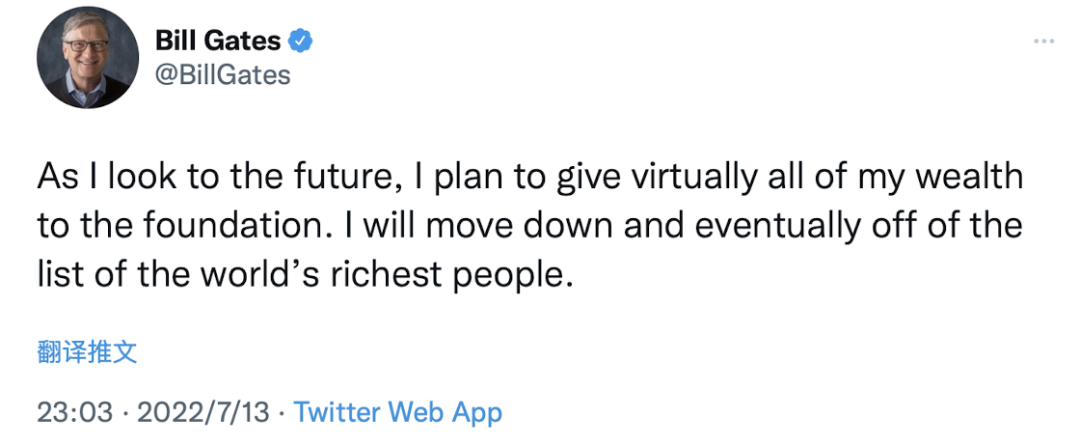近日,比尔·盖茨再次在 Twitter 上连续发文,并称“展望未来,我计划将我几乎所有的财富都捐给基金会。我将下移,并最终退出世界最富有的人名单。”