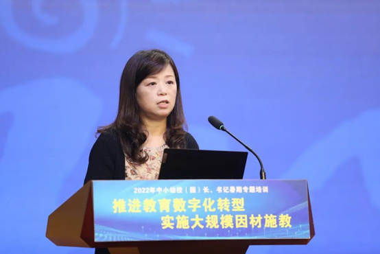 上海市闵行区教育学院党总支书记、院长朱靖围绕《教育数字化转型背景下的精准教学》展开交流。朱靖指出,现阶段很多人所说的“因材施教”只是一种教育思想和理念,而不是具体的方法,在实践中也缺少具体落地的操作模式。