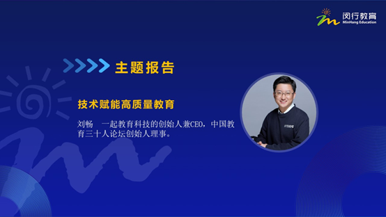 一起教育科技创始人兼CEO刘畅以《由数据驱动的闵行区教育数字化转型实践》为题作分享。他表示,教育数字化落地的核心是解决数据的来源,因此,基础数据的采集尤为重要。而作为数据采集终端的智慧笔,很好地解决了教学作业全过程数据采集的问题。这样就可以利用采集到的数据,真正实现以数据驱动去助力教师教育教学改革,促进学生的个性化自学,转变家长的育人方式,真正实现教育管理数字化的落地和转型。