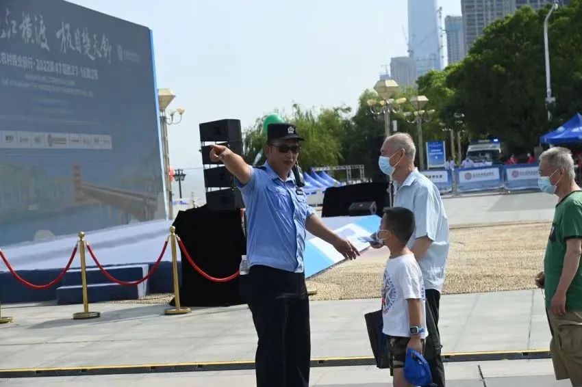 16日早上7时,全体安保力量提前2个小时上岗,对活动现场进行清场,并设置警戒隔离线,防止无关人员进入。由于今年调整了比赛线路,从汉阳大禹神话园下水至武昌长江观景第一台起水。汉阳、武昌、江汉区分局及特警支队组织警力,对活动现场及沿线的闸口、防汛堤、观景平台及长江大桥桥面等进行安全控制,疏导人群,劝阻靠近江边群众,防止观看群众拥挤落水,造成事故。