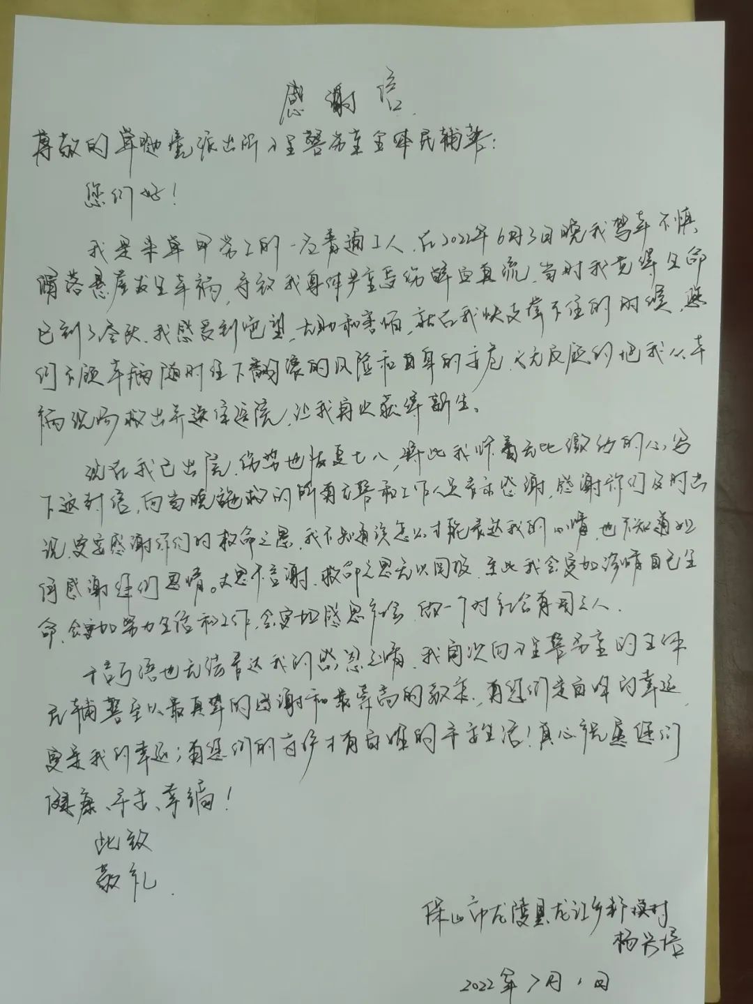 图为杨某夫妇为表达感谢之情制作的锦旗。