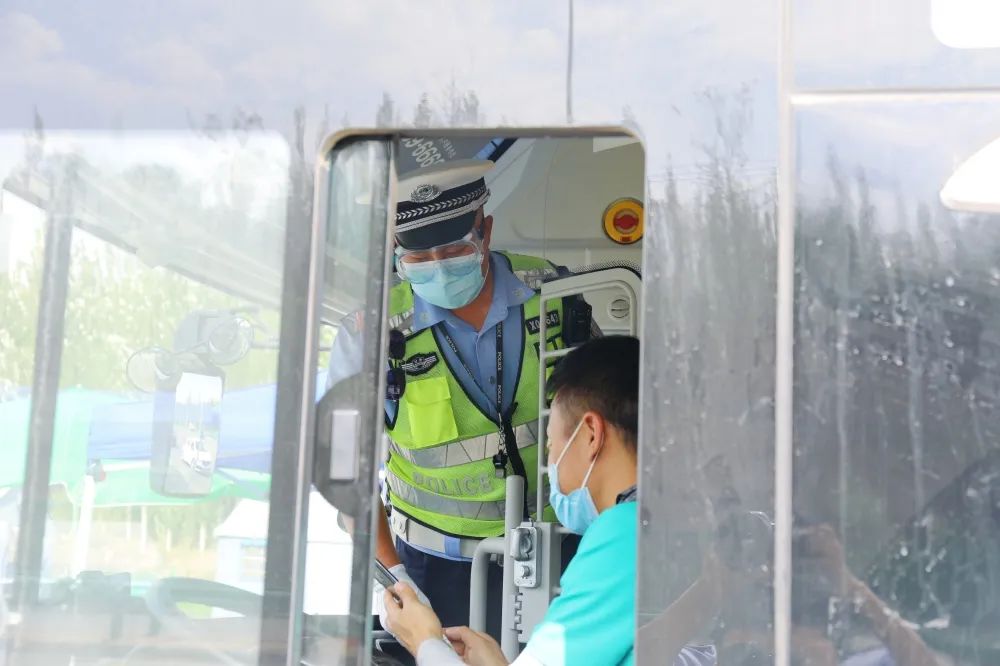 兰州新区公安民警正在对公共交通驾驶员进行例行检查。