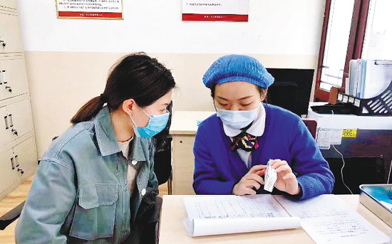2020年2月,城阳区一家民营医疗机构的工作人员像适龄女性讲解HPV疫苗的注意事项。