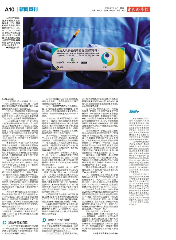 毕竟时光不能倒流,人生没有如果。回到现实的璐璐明白,对于生者应该做的就是好好生活,照顾好自己。那是2018年大学毕业后,在青岛一家媒体见习的她跟着“师傅”跑新闻时,了解到预防宫颈癌有了九价HPV疫苗。可她这个刚入职场的“小白”,面对疫苗四五千元的不菲价格时,只能暂时将心底的渴求搁浅。