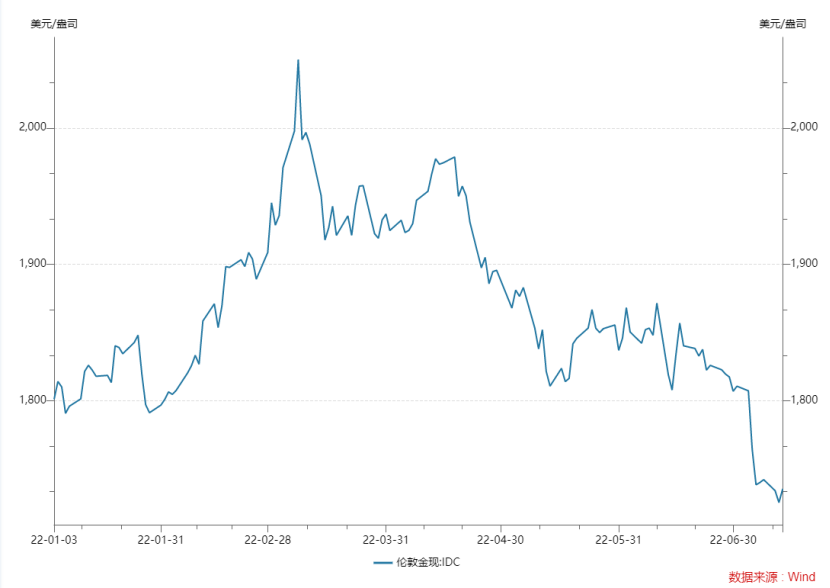 近段时间,国际黄金价格大幅走低,截至7月15日,纽约商品交易所黄金期货价格收于每盎司1703.6美元,较今年高位每盎司2070.42美元,已经回调17%。