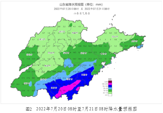 图2 2022年7月20日08时至7月21日08时降水量预报图
