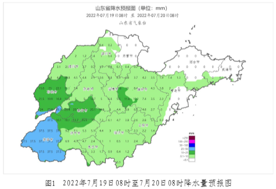 图1 2022年7月19日08时至7月20日08时降水量预报图