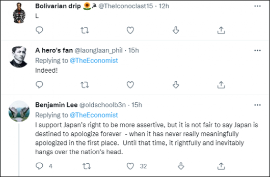 但在这样的认识基础上,《经济学人》还是对安倍的行为表示了赞同,甚至将其行为和日本历史上的“维新志士”做类比,称安倍在带领日本向新的未来前进。这样明目张胆地把开倒车说成“进步”,妥妥的“颠倒黑白”的内容,在评论区引发了不少各国网民的批评。