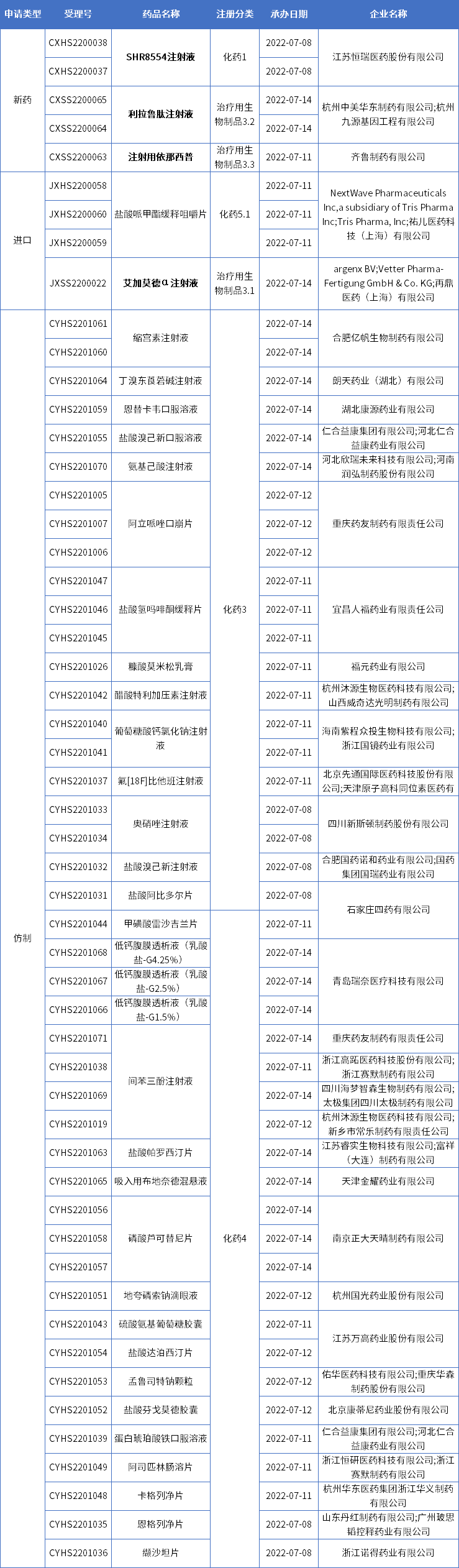 本期CDE新增报生产受理号53个,共37个品种,其中恒瑞医药的SHR8554注射液、华东医药的利拉鲁肽注射液、齐鲁制药的注射用依那西普、以及再鼎医药的艾加莫德α注射液备受关注,更多动态见下表: