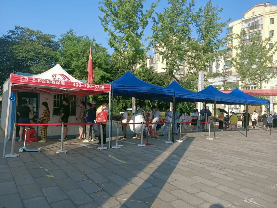 持续的高温天气考验着抗疫人员和志愿者们的耐力和体力,社区提前在各个点位准备好了降温冰块、风扇和防暑药品。为了减少居民等待的时间,二毛小区将核酸点移到居民过道阴凉处,上午十点的地面温度40多度,二毛小区核酸检测点却凉意十足;水上公园核酸点也支起了“遮阳伞长廊”,准备好了休息凳,让排队等候的居民既能避暑遮阳,又能保持安全距离。在志愿者的引导维护下,居民有序排队,各点位的核酸检测有序高效进行。对于行动不便人员,社区工作者和医务人员采取上门采样,确保不漏一户,不漏一人。