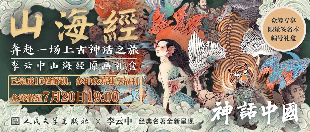 由国画大师戴敦邦的得意门生、电影《封神三部曲》特邀设计师、当代青年艺术家李云中携手人民文学出版社官方文创团队人文之宝共同打造的神话中国·山海经:李云中山海经原画礼盒,尽揽四海之内地舆风物,一次性打造属于中国人的“异兽图志”。