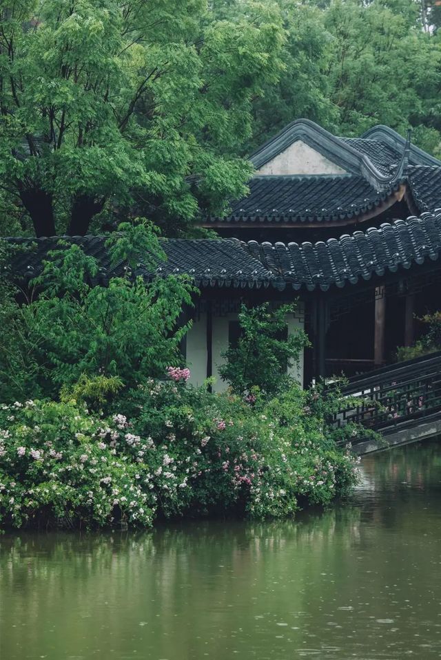 池中的凫鸟和画舫在窃窃私语,屋檐下的燕子和回廊在悄声探寻着园林的秘密,人间仙境,就是这里了吧!