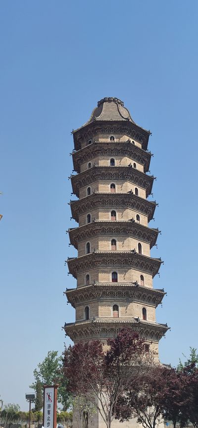 靠近之后你可以仔细端详这座宝塔,高61米,九级八面,通体近垂直,塔身上留下的是岁月的痕迹。