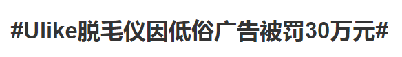 在此之前,Ulike脱毛仪“没有蓝宝石,我不脱”的低俗广告被指打擦边球,受到舆论关注,广告制作商被罚50万。